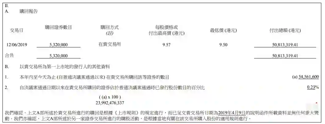 6月12日,小米集团再次回购532万股B类股,这是小米6月3日启动第二轮回购后的第五次回购。截至6月12日,小米本轮合计购回5456.16万B类股,耗资约5.01亿港元,平均回购价格为9.18港元。小米集团表示,公司的根本信心来自于其互联网商业模式及“手机+AIoT”双引擎战略,以股份购回表达对现时及长期业务前景充满信心。