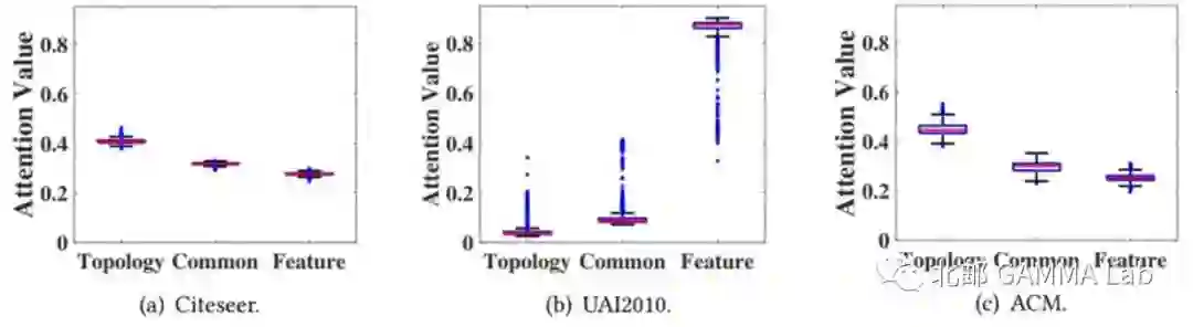 对该结果分析:由于节点特征与节点标签高度相关,因此直接对特征利用MLP进行分类就能够表现出良好的性能。而由于GCN从节点特征和拓扑结构中同时提取信息,但不能自适应地根据任务来融合与选择它们,因此GCN的效果大幅下降。