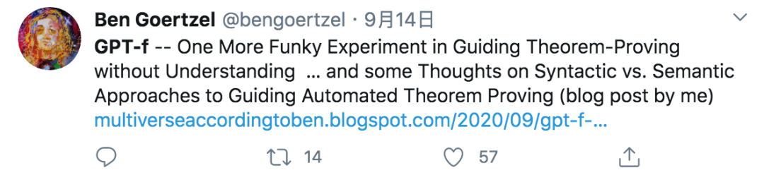 美国通用人工智能会议主席、奇点大学顾问、人工智能软件公司 Novamente LLC 公司董事长 Ben Goertzel 也在推特发表了自己的看法,他认为,GPT-f 又是一个在不理解的情况下指导定理证明的古怪实验……