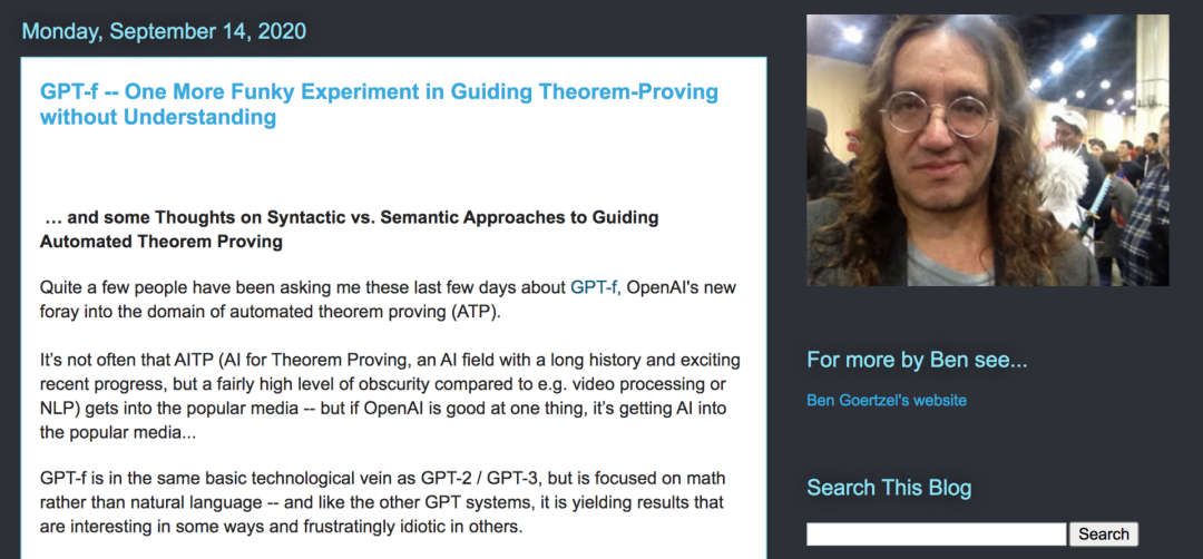 他还专门写了一篇文章来谈论对于 GPT-f 的看法,发表在了自己的博客上。