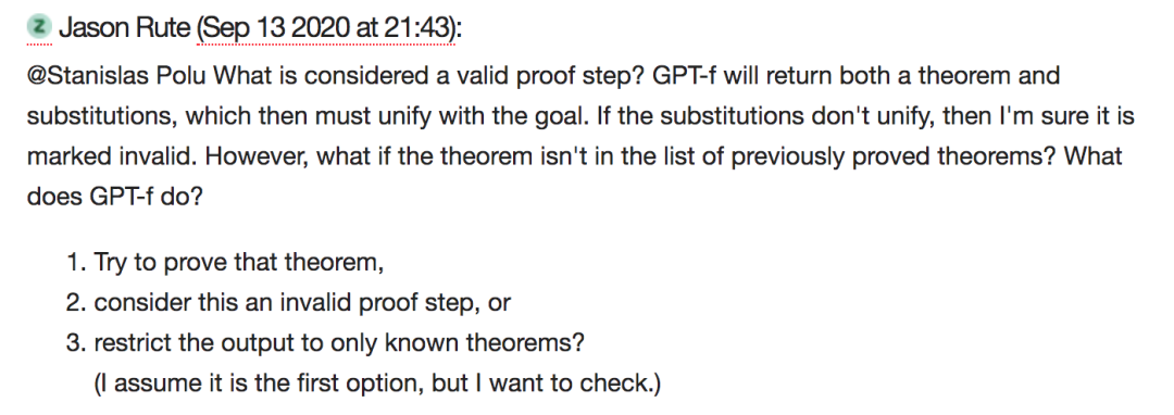 比如网友@Jason Rute 就问到:什么才是有效的证明步骤?Jason Rute 曾经是一名数学家,后来成为了数据科学家,他对深度学习很感兴趣。
