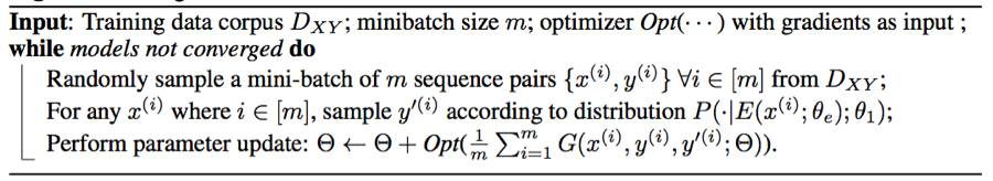 基于神经网络的编码器-解码器框架已经在序列生成任务上得到了广泛的应用,其中包括神经机器翻译[1]、文本摘要[19]、图像描述[27]等。在这样的框架中,编码器将长度为 m 的源输入 x 编码成一个向量序列 {h1,h2,· · · , hm}。编码器(通常是一个 RNN)则基于来源的向量表征和之前生成的词来逐个词地生成一个输出序列。注意机制[1,35]则是在生成每个目标词时动态地关注 x 的不同部分,该机制可被整合进编码器-解码器框架中,从而提升长序列的生成质量 [1]。