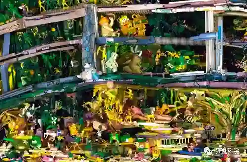 但实际上它的鳞片是扣子,主干是玻璃杯,腹部还有人脸贴画。很难想象,一堆这样的垃圾,能拼出如此逼真的效果。