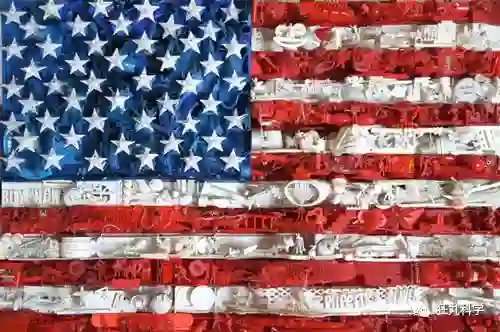 当然这种拼接并非完全杂乱无章、只顾颜色随意放置,而是在一层又一层的搭建中暗藏玄机。Tom想要做的是将内容、意义、形象融合为一体,让每一个画面背后都有另一个故事。像下图表面上是一面干净整洁的旗子: