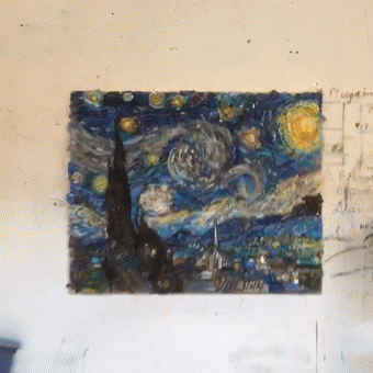 一个人的垃圾是另一个人的财富,但对于美国艺术家Tom Deininger来说还不止如此。垃圾,在他的手中变成了能骗倒你双眼的艺术品。下面这幅,乍一看是常见的梵高《星月夜》仿品: