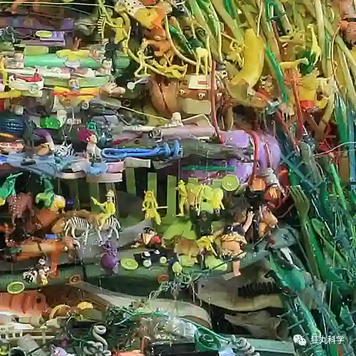 但事实上,这并不是什么美景,因为海浪卷起的都是垃圾;浪中更没有阳光,只有一排排黄色的玩具。