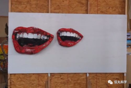 远看这是两张大嘴,就像是用笔画在纸上的三维立体画: