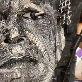 但实际上眼珠是钢丝圈套木棍,脸部也是杂乱不堪的网状结构: