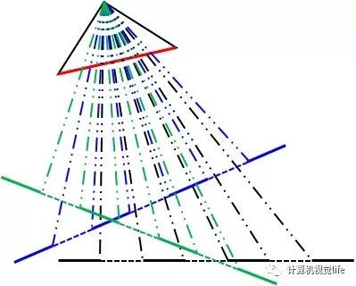 的物像共轭关系,显然③过光心的光路是最容易建立物像共轭关系数学模型,因此我们用③来代表成像光路,对相机成像过程进行简化。