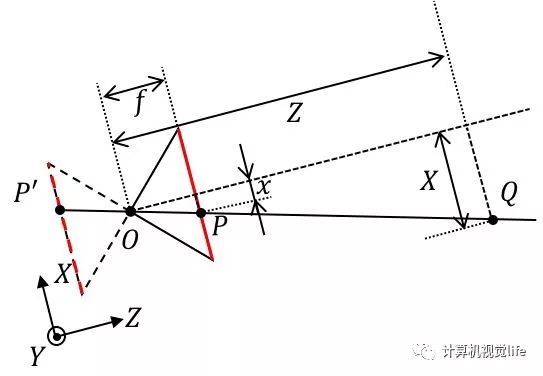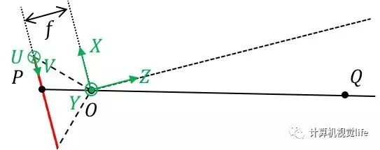 是针孔相机模型的焦距,但请注意,此针孔相机「焦距」非彼等效透镜「焦距」,只是借用了「焦距」汇聚光线的概念,表达的是CCD面到光心的距离。