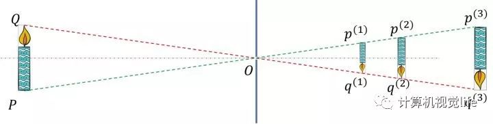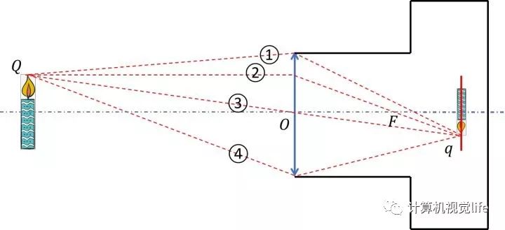 的位置,现在我们对「相机拍摄到清晰的蜡烛燃烧场景的草图」同样用作图法,只考虑