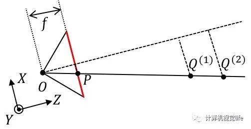 上,但无法确定具体的点,所以我们讲,针孔相机模型是一个射线方程模型,
