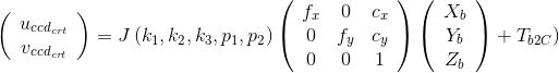 代表board to camera。注意这个坐标系的变换是一个线形变换,反应到物理上讲,这意味者标定板必须尽可能的平,如果标定板不平,这个变换就不是线形的了。我们把这个变换带到原本要拟合的方程中去: