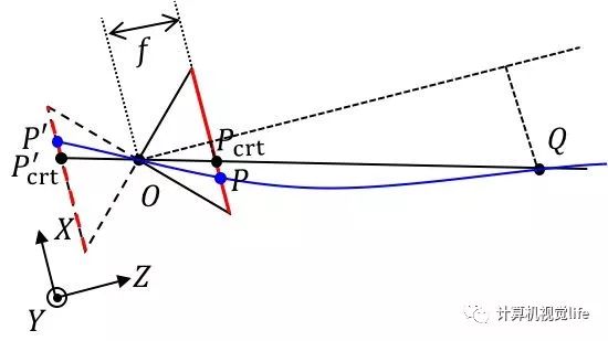 但是我们说的是简化后的相机模型和针孔相机的成像原理仅仅是相似,绝不能等同,由于针孔相机的原理是光沿直线传播,所以真实的针孔相机是没有「焦距」的概念的,也不存在像差,其物像关系不具有一一对应性,如下图。