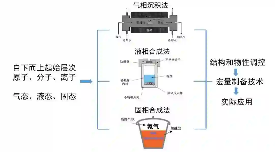 图3 低维纳米材料制备方法分类与结构物性调控以及面向实际应用的宏量制备技术