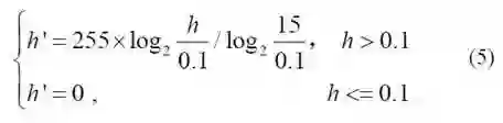 在高度图中,天空、建筑物和树对应于较大的高度值,而诸如车辆和行人的较重要的对象对应于相对较小的高度值。为了突出重要目标,使用等式(5)来变换对应于每个像素的高度值,以生成高度值在0到255之间的高度图像。