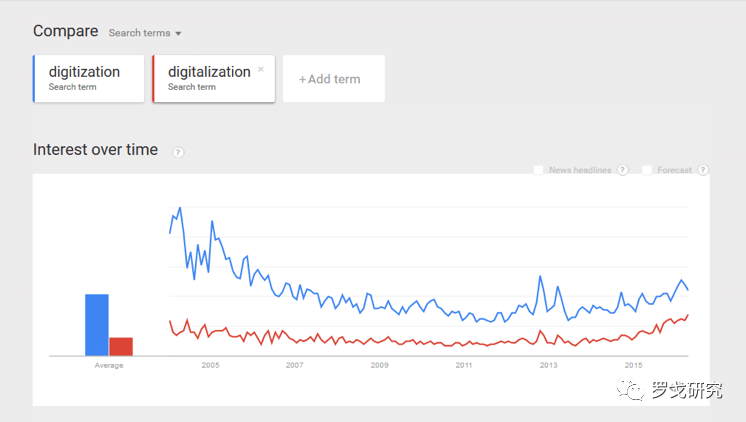图1:比较Digitization(数码化)和Digitalization(数字化)(来源:谷歌趋势)