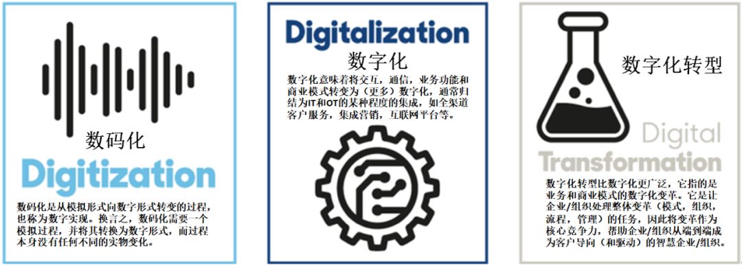 图2:数码化,数字化,和数字化转型/变革定义(来源:【3-4】)