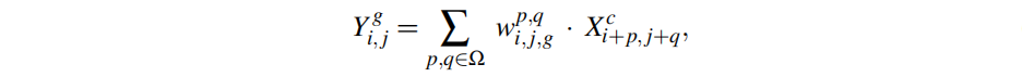 ,其中g表示分组数,k表示生成动态滤波器的卷积核尺寸。为确保生成的滤波器是低通滤波器,作者约束了生成权值均为正并通过softmax进行归一化。