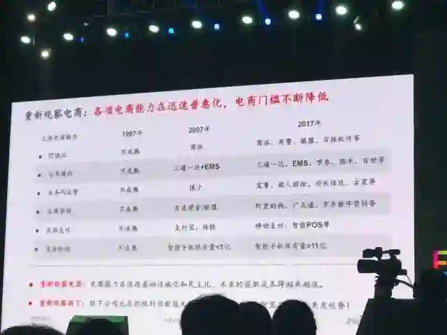 到今天这个时点上,原来为这些电商所独有的能力正在不断的下降,电商原来拥有的飞机大炮一样的能力,正在被迅速的基础设施化和民主化,大家获取越来越容易。同时,就像小鹏刚刚提到的,我们的线下非常落后,而他们正在使用这样的一些基础设施。