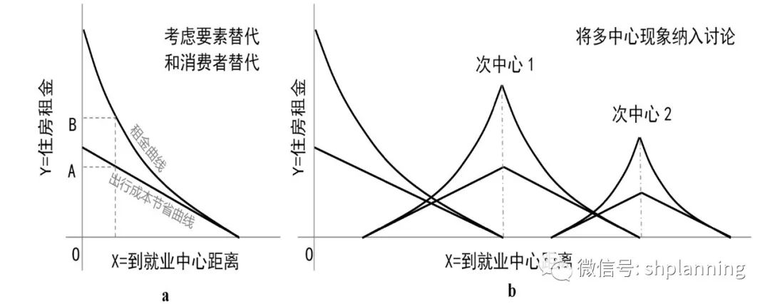 然而城市空间并不是扁平的,O'Sullivan认为,在靠近城市就业中心的区位,生产者将通过增加楼层高度等方式,以其他要素投入替代土地投入,而消费者也将以其他要素消费替代住房面积消费,这使得竞租曲线并非线性变化而是呈现中心极化的态势。