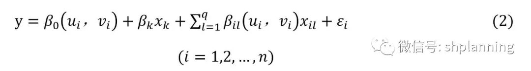 该模型是一种揭示影响因素空间异质性的建模技术,允许回归系数估计值随地理位置的变化而变化,其与普通线性回归的区别在于回归参数中添加了地理位置因子的影响。