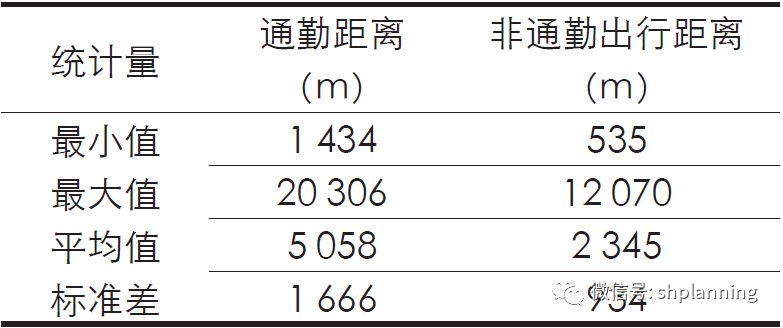 通勤距离以社区居民居住地与就业地直线距离的平均值表示,非通勤出行距离以居民非工作时间段除就业地以外的其他活动地点距居住地距离的平均值表示。