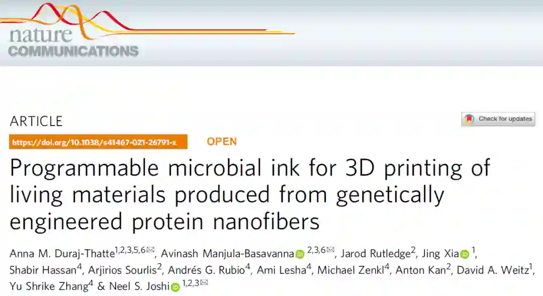 近日,由美国哈佛大学的约翰·保尔森工程与应用科学学院、威斯生物工程研究所、医学院医学部和工程部,以及美国东北大学化学与化学生物学系的学生们一同完成了一项关于生物墨水的研究。他们的研究工作将先进的纳米生物技术与活性材料技术相结合,为 3D 生物打印技术生产功能性“活体”开辟了新空间。这项研究也发表在了自然杂志的子刊 Nature Communications 上。