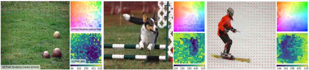 通过前两个部分证明了自适应窗口设计的有效性,作者结合光流、窗口交互趋势等方法对交互窗口形成的responsive field的交互趋势和交互窗口的大小进行分析: