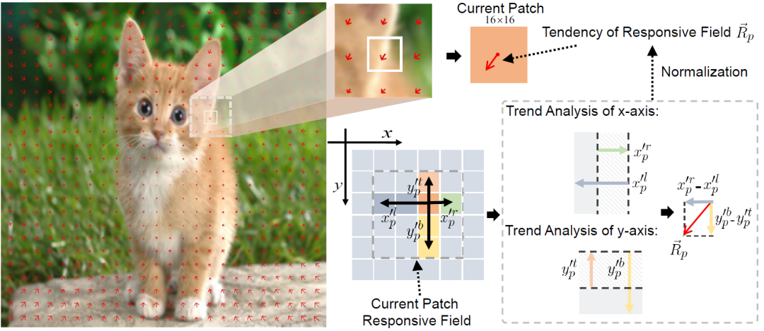 作者首先通过量化patch交互的不确定性关系,通过阈值选择的交互关系作为可靠性较强的patch连接。接着,利用筛选后的交互连接关系,计算当前patch与其交互可靠性较强的patch中在四个方向的极值,最终转换为当前patch的交互窗口区域。