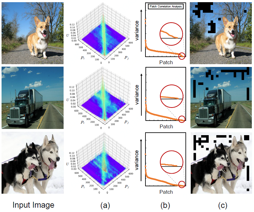 冗余的Patch之间的交互关系。Self-attention 机制通过patch-wise之间的long-range关系构建注意力关系,形成了冗余的计算代价。