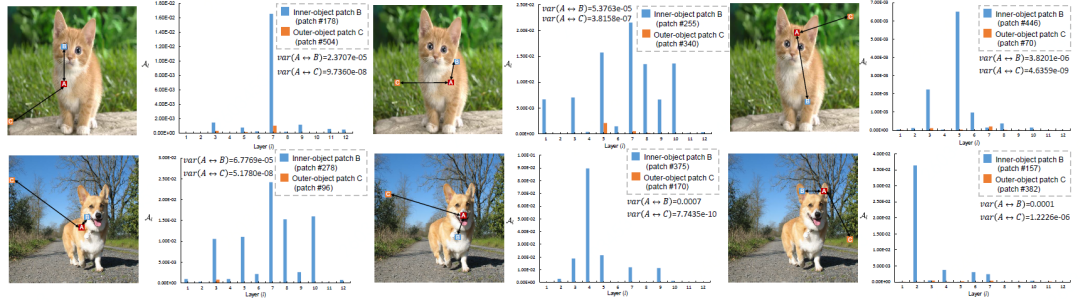 作者随机选择不同patch组合(inner-object 和 outer-object),量化不同的patch的交互关系,实验证明具有不同语义信息的patch在交互过程中是存在较大的差异。