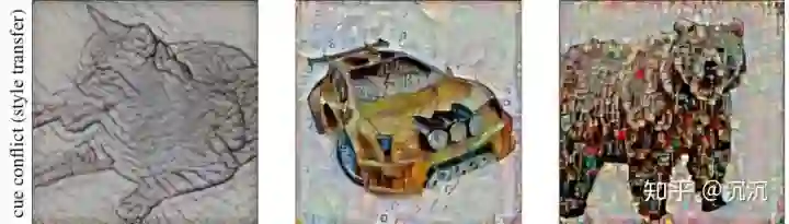 一个对于卷积神经网络工作原理的常见解释是,它通过不断的卷积和池化操作,从提取最简单的边角特征,到不断融合这些浅层特征来表达更为复杂的形状。现在看来,形状并不是卷积神经网络做出判断的主要依据,颜色和纹理才是。这就是所谓的对颜色和纹理的偏好现象。