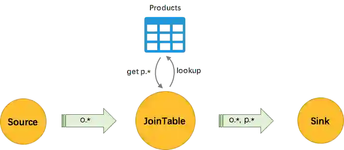 INSERT INTO gmv_output SELECT TUMBLE_START(s.timestamp, INTERVAL '1' MINUTES) as time_minute, d.catagory, SUM(d.price) as gmvFROM user_action_source s JOIN item_detail_dim FOR SYSTEM_TIME AS OF PROCTIME() as d ON s.item_id = d.idGROUP BY TUMBLE(s.timestamp, INTERVAL '1' MINUTES), d.catagory;