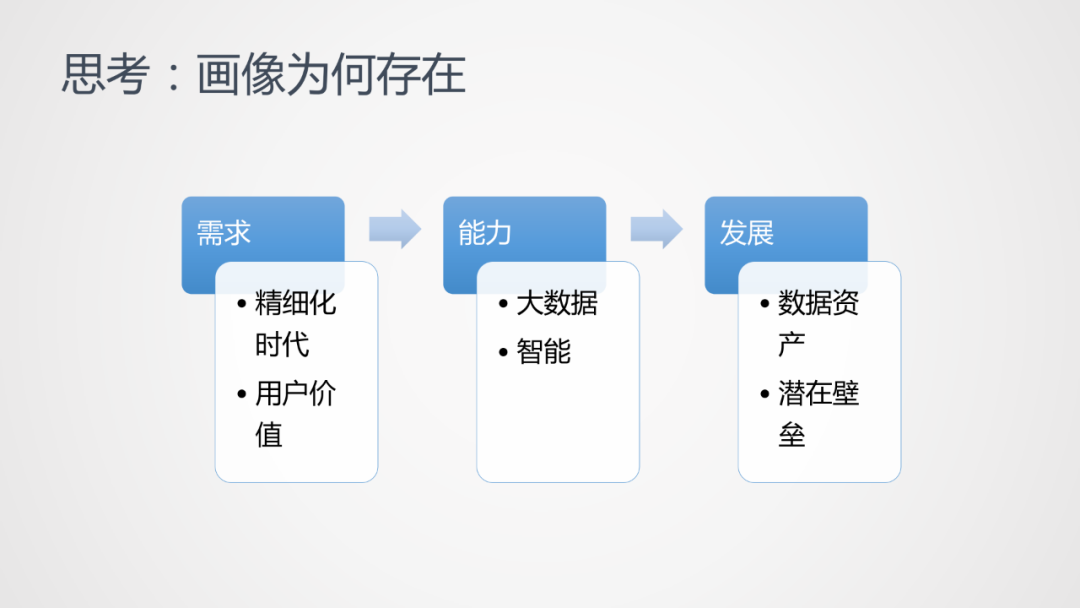 用户画像是公司对未来发展的重要基础。用户画像聚集了"上帝",因为我们做所有的APP都是为用户服务的,希望给用户提供更好的体验。这些"上帝"形成的画像,无形中成为了公司的资产,这在每个公司都是适用的。