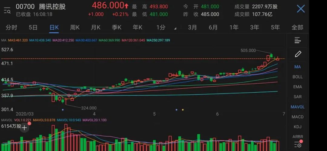 6月23日、6月24日,腾讯股价连续上涨,并突破500港元,总市值超过了阿里巴巴,重回中国最大互联网公司宝座。