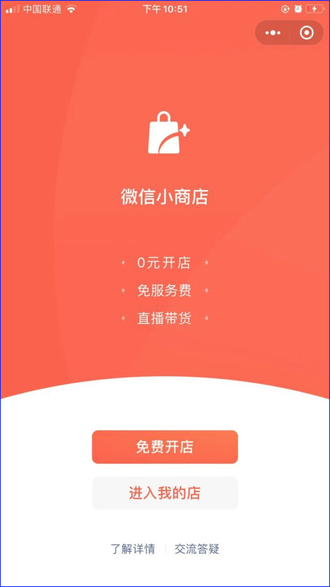 按照官方的说法,微信小商店是小程序团队全新打造的一个快速建店工具,无需开发即可一键开通一个卖货小程序,可免服务费,店主还能直播带货。