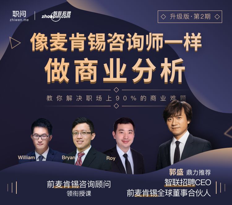 而顶尖咨询公司的商业分析,一直是业内公认的最高水平。因此,我们联合一群全职经历覆盖麦肯锡、BCG、贝恩、罗兰贝格的导师开发了一个对赌计划,全真模拟咨询巨头内部技能培训;