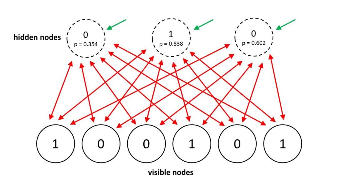 对于正相位,首先将可见单元的数据矢量钳位。然后计算所有可见和隐藏单元对的<ViHj>的确切值。对于每个连接的单元对,对小批量中的所有数据<ViHj>求平均。
