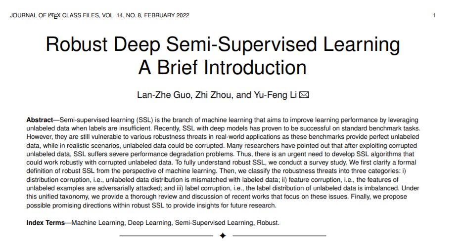 半监督学习(Semi-supervised learning, SSL)是机器学习的一个分支,其目的是在标签不足的情况下利用未标记的数据来提高学习性能。南京大学李宇峰团队发布首篇《健壮深度半监督学习》综述论文,探讨了学习分布损坏、特征损坏和标签损坏的未标签数据方法体系。