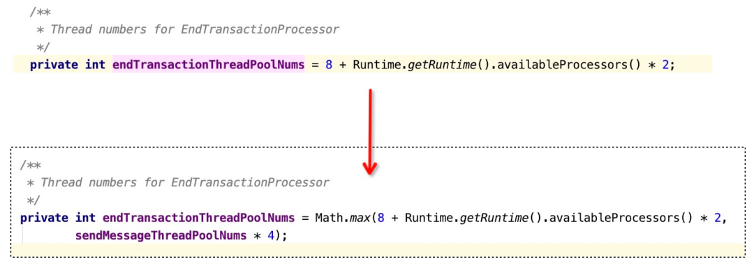 新版本主要是可通过调整发送线程池来动态调节事务消息的值,这个大家可以根据压测结果动态调整。