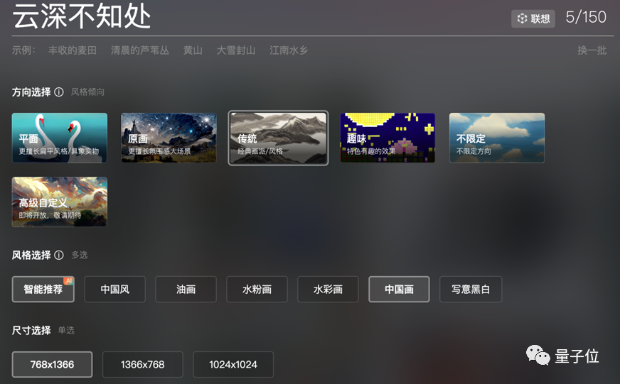 相比之下文心·一格倒是没有格式要求,输入150字的句子或词组都可以: