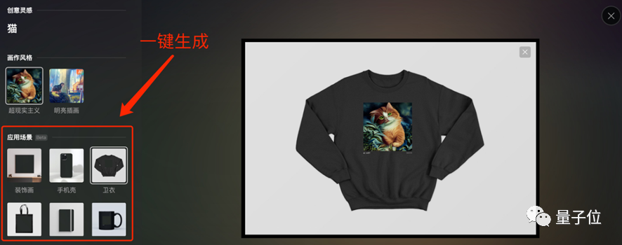 我们在试玩文心·一格的时候,还发现了左下角这些有意思的应用场景,一键就能生成预览: