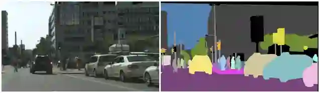 Cityscapes 数据集的示例图像及其全景分割遮罩