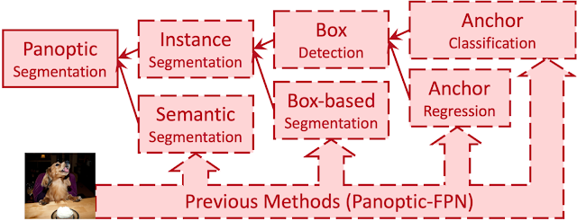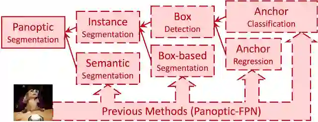 在此代理树中,每个子任务都会产生额外的手动设计模块,如锚点设计规则、边界框分配规则、非极大值抑制 (NMS)、thing-stuff(thing 类物体和 stuff 类物体)合并,等等。虽然对于单个子任务和模块,不乏一些出色的解决方案,但当我们将这些子任务整合到一个流水线中进行全景分割时,就会产生不需要的构件,在一些比较棘手的情况下更是如此(例如,两个具有相似边界框的人都触发 NMS,从而导致其中一个遮罩缺失)。