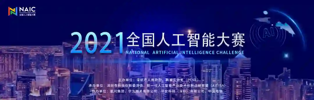 全国人工智能大赛(以下简称NAIC)由深圳市人民政府设立于 2019 年,至今已发展到第三届。大赛立足国际视野,营造人工智能创新创造氛围,促进产业、学术、资本、人才等创新要素融合发展。2021年,第三届全国人工智能大赛由深圳市人民政府、鹏城实验室(PCNL)主办,深圳市科技创新委员会、新一代人工智能产业技术创新战略联盟(AITISA)联合承办,DataFountain(简称DF平台)作为大赛合作伙伴参与赛事支持。
