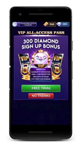 优质的订阅内容往往是是吸引新买家的重要因素。Scopely 旗下的游戏《命运之轮》为订阅用户开放了所有的内容权限,因为除了打折促销以外,潜在买家也希望从订阅服务中获取一些专属奖励。您可以在首次用户体验 (FTUE) 后,向用户显示诸如 "更多能量" 之类的奖励信息,以此来促进新买家的游戏参与度,并帮助他们养成定期游戏和长期投资的习惯。