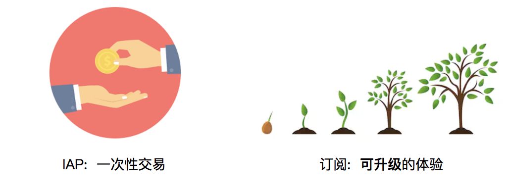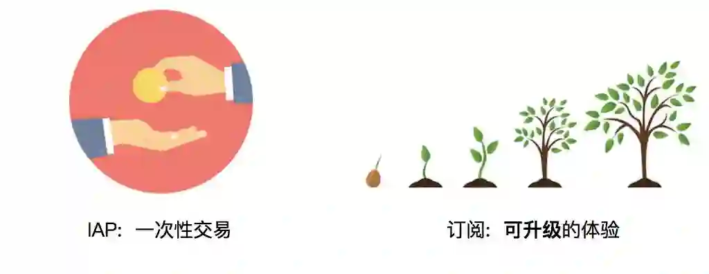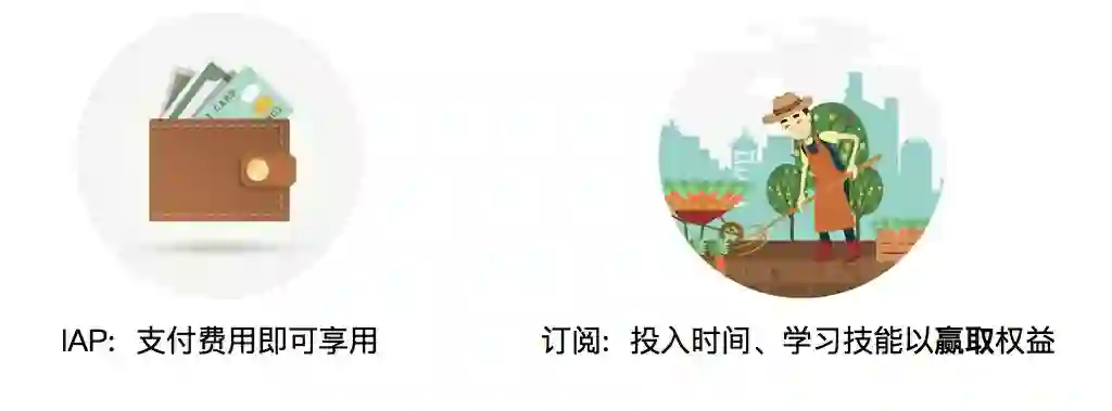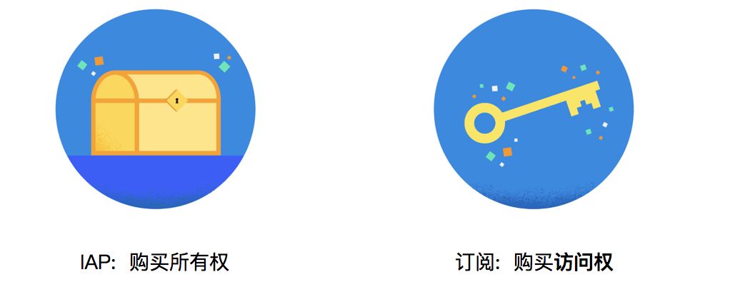 IAP 和订阅在设计上的主要区别在于: IAP 向用户出售 "所有权",一旦购买完成,用户便可长期保留所购商品或服务;而订阅业务出售的则是内容 "访问权",选择订阅套餐不同,可享用的项目也不同,而且用户亦可选择更换套餐,以获得或放弃一些权限。