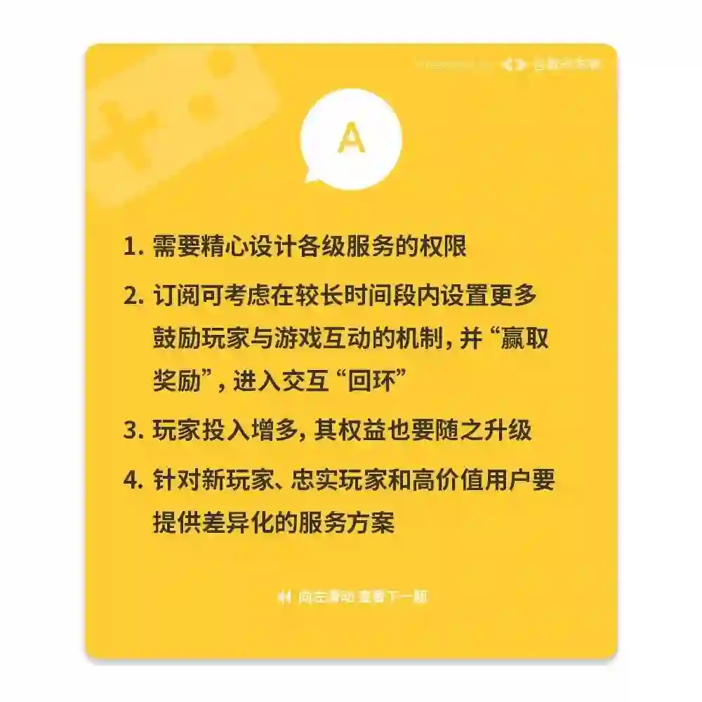 如果您正在考虑在游戏中测试订阅业务,请按照以下步骤,动手设计合适的方案: