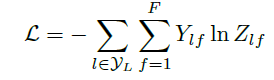 最后,我们针对所有带标签的节点计算cross entropy损失函数: